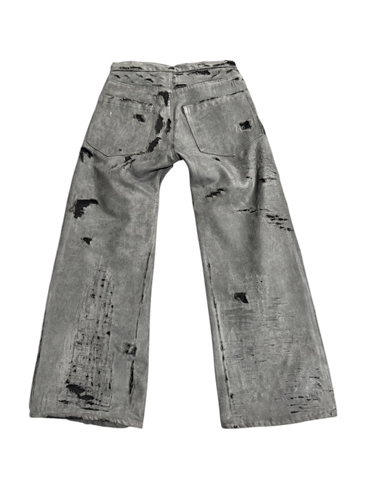 Sold outWIDE LEG DISTRESSED GREY SUEDE DENIM
